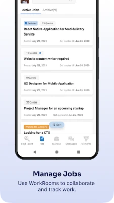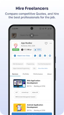 Browse the quotes that you receive. Review and compare profiles for performance, feedback, portfolio, and earnings statistics. Select the best professionals for your job.