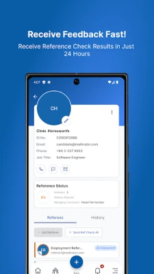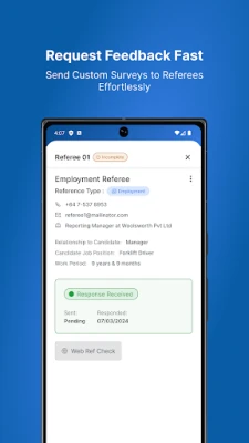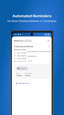 • Direct Request from Candidates: Easily request referee details directly from candidates within the app, simplifying the initial stages of the reference checking process.