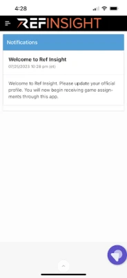 The Ref Insight app allows you to manage your official profile and receive time-sensitive information about your assignments, and paid invoices.